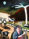"The Shrimp Eater" · India Ink and Oil on Canvas · 18 x 24 inches · 2019 · SOLD