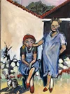 "Two With Cat in The Peloponnese" · Oil on Paper · 16 x 12 inches · 2019