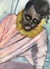 "Eyelet Collar Pink Rose (Bust)" · oil on paper · 16 x 12 inches · 2019